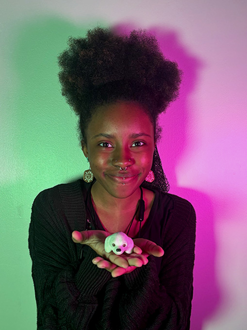 She works in a multitude of mediums ranging from digital to fiber arts.